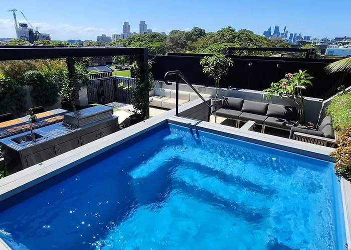 The spacious Penthouse Perfection With Private Rooftop Pool Sydney apartment includes a terrace and is situated a 6-minute walk from Coles Waterloo. Wi-Fi is available for guests' business or leisure needs.
